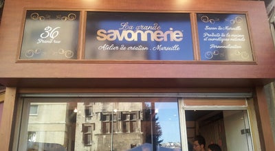0 | The first image shows the exterior of a building with a wooden facade. The building has a sign with the name 'La Grande Savonnerie' written in a decorative font. The sign is divided into four sections, each with a different design. The top left section has the number '30' and a decorative border, the top right section ... | Az első képen egy fahomlokzatú épület külseje látható. Az épületen díszes betűtípussal fel van tüntetve a „La Grande Savonnerie” név. A tábla négy részre oszlik, mindegyik más-más mintával. A bal felső rész 30-as számmal és dekoratív kerettel, a jobb felső rész kék háttérrel fehér szöveggel, a bal alsó részben kék hátt... | |