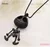 0 | A black pendant with a circular design and a small figure with legs and arms hanging from it is displayed against a white background. | Fehér háttér előtt egy kör alakú fekete medál és egy lábakkal és karokkal lógó kis figura látható. | |