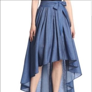 0 | A woman is standing with her back to the camera, wearing a blue skirt with a pleated design and a bow at the waist. The skirt has a sheer overlay at the bottom, and the woman is wearing black shoes. | Egy nő áll háttal a kamerának, kék szoknyát visel, redőzött mintával és masnit a derekán. A szoknya alján áttetsző rátét van, a nő pedig fekete cipőt visel. | |