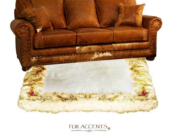 0 | A brown leather couch with a matching brown leather ottoman is displayed on a white rug with a brown and beige pattern. The couch has a tufted backrest with rolled arms and wooden legs. The ottoman has a tufted top and wooden legs. The rug has a fringe along its edges. | Barna és bézs mintázatú fehér szőnyegen egy barna bőrkanapé és hozzáillő barna bőr oszmán látható. A kanapé bojtos háttámlája gördített karokkal és fa lábakkal rendelkezik. Az oszmán bojtos tetejű és fa lábakkal rendelkezik. A szőnyeg szélein rojtok vannak. | |