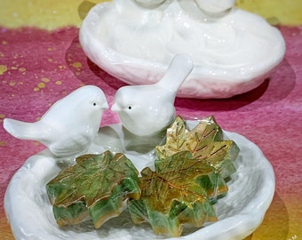 A close-up image of a heart-shaped accessory with a textured surface and multiple silver beads. The beads are arranged in a pattern that resembles a heart, with some beads having a metallic finish and others appearing more matte. The accessory is placed on a surface with a pink and white pattern, and there is a small pink circle with a white line in the bottom left corner.