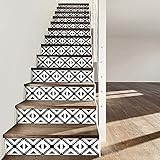 0 | A white staircase with black geometric patterns on the risers and a black handrail. | Fehér lépcsőház, fekete geometrikus mintákkal az emelvényeken és fekete korláttal. | |
