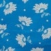 A blue fabric with a floral pattern featuring white flowers and leaves.