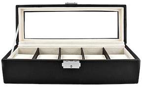 A black leather briefcase with a silver lock and handle is open, revealing a white interior with three compartments. Each compartment has a white tray inside, and the briefcase is placed against a white background.