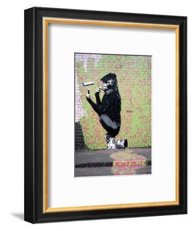 0 | A framed picture of a monkey holding a spray paint can, sitting on a skateboard, with a graffiti wall in the background. The frame is black with a gold border, and the picture is set against a white background. | Bekeretezett kép egy majomról, aki egy spray-festékdobozt tart, gördeszkán ül, a háttérben graffitivel. A keret fekete, arany szegéllyel, a kép fehér háttér előtt áll. | |