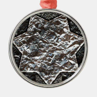 0 | A silver Star of David with a textured surface and a red ribbon hanging from the top is displayed against a white background. | Fehér háttér előtt egy ezüst Dávid-csillag látható texturált felülettel és egy piros szalaggal a tetején. | |