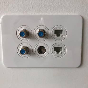 0 | A white electrical outlet with four ports, two of which are blue and two are black, is mounted on a white wall. The outlet is clean and appears unused. | A fehér falra egy fehér konnektor van felszerelve négy csatlakozóval, amelyek közül kettő kék és kettő fekete. A konnektor tiszta, használatlannak tűnik. | |