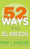 The image features a book cover with a green background and a large orange circle in the center. The title '52 Ways to Sell More Books' is prominently displayed in white text. Below the title, there is a smaller text that reads 'Penny C. Sansesvieri'. The cover has a modern and eye-catching design, with the title and author name standing out against the background.