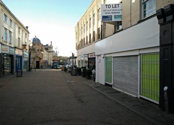 A narrow street with a row of buildings on one side and a parking lot on the other. The buildings have a mix of architectural styles, with some featuring large windows and others with more traditional designs. The street is empty, and the sky is clear. There is a sign on the building that reads 'TO LET' with a picture of a house.