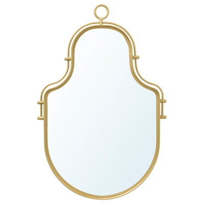 Arany ovális tükör sima fehér háttérrel és egyszerű arany kerettel.
