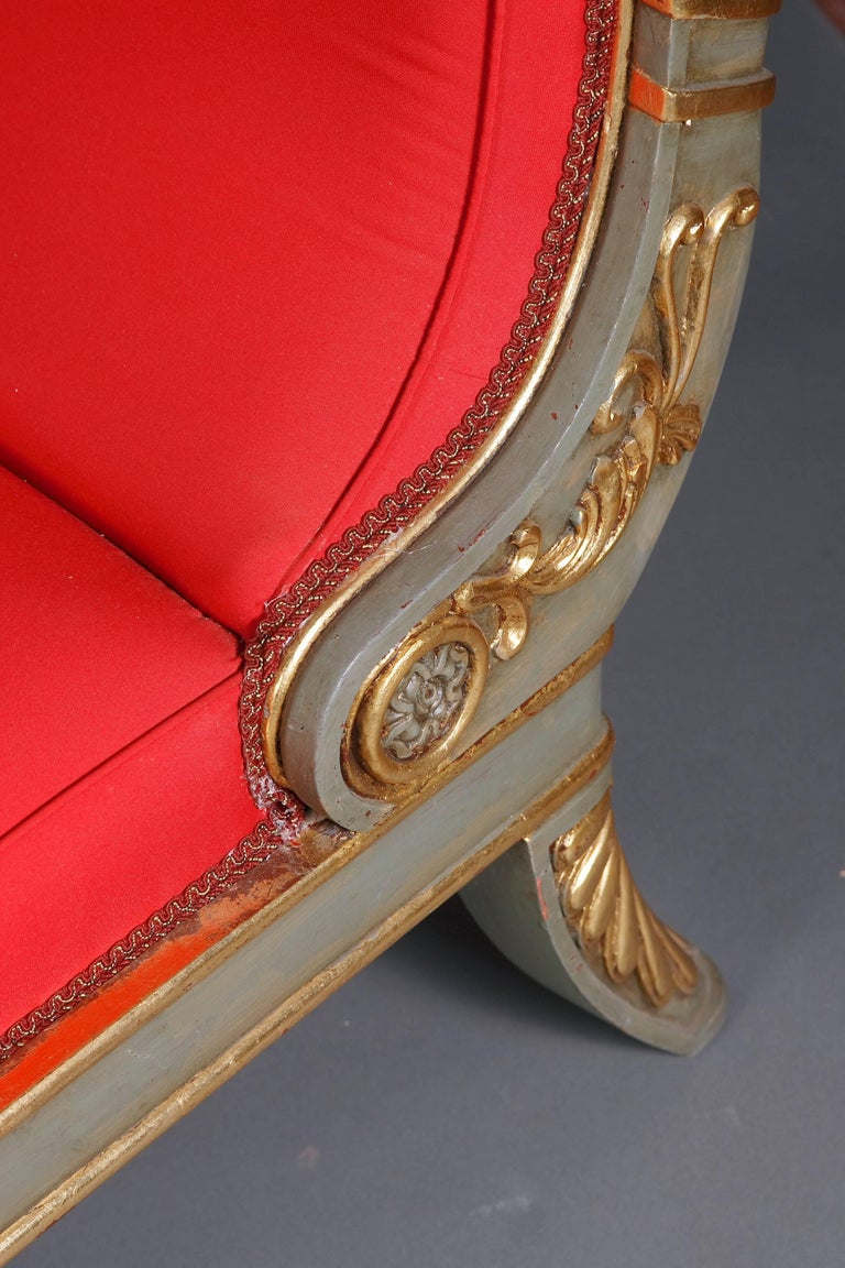 The image showcases a red velvet chair with gold accents. The chair features a curved backrest and armrests adorned with intricate gold detailing. The seat cushion appears plush and comfortable, complementing the overall luxurious design of the chair. The chair's upholstery has a rich red hue with subtle sheen, suggest... | |