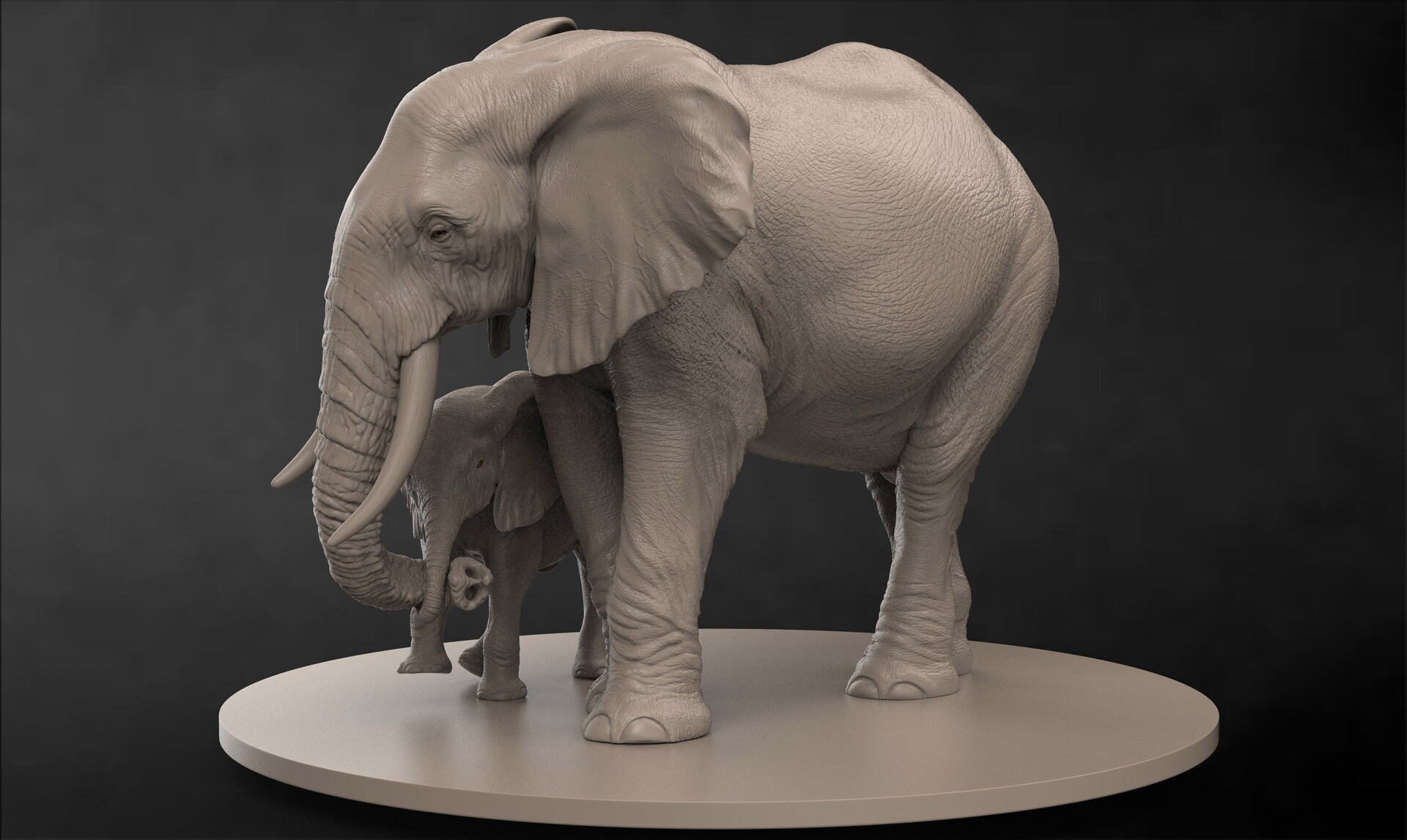 xzgOxR | 25,639,834 | bornsaiart | 4,000 | 2,387 | 2020-03-31 | 55 | Affection | 3d, african, calf, detailed, duo, elephant, male feral, simple background, substance painter, unfinished, zbrush | |