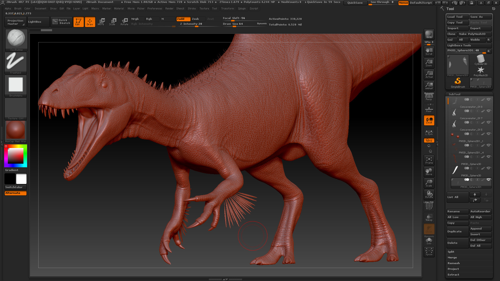 w6W1NX | 38,848,732 | mlw_creative | 1,920 | 1,080 | 2021-06-20 | 633 | TUTORIAL - ZBrush Painting /Texturing - ZBrush Turntable | 3d, ambiguous feral, detailed, dinosaur, simple background, solo, unfinished | |