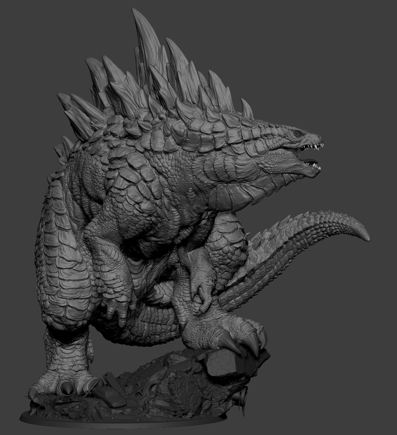 g2vaEZ | 36,326,863 | lakoh | 1,372 | 1,500 | 2021-03-31 | 4,300 | Gojira - Zbrush screenshot | 3d, 3d print, bronze, detailed, godzilla, kaiju, male feral, miniature model, simple background, solo, unfinished, zbrush | |
