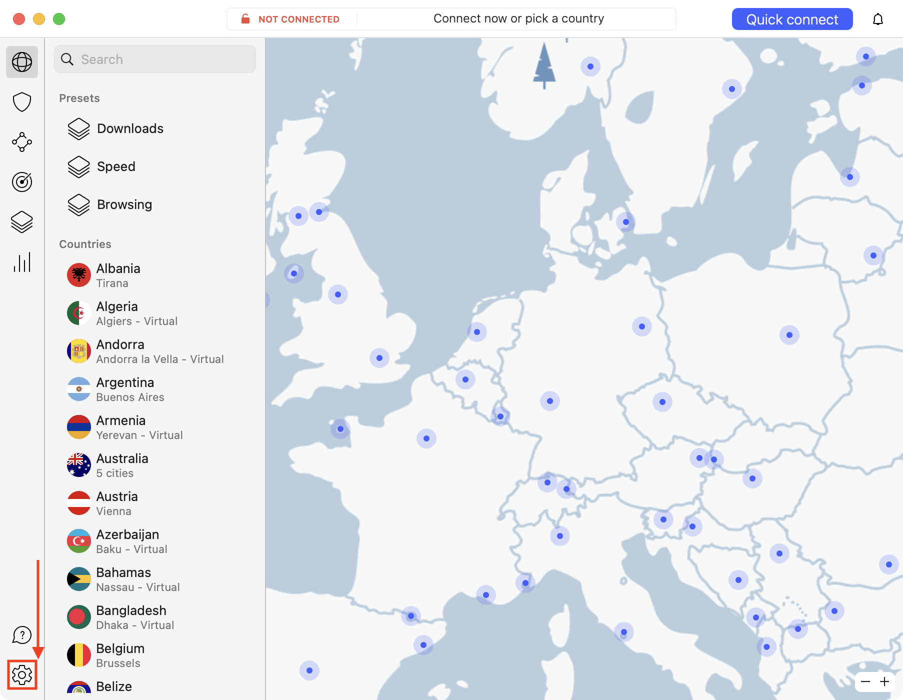 In case you wish to select a specific server, follow these steps: