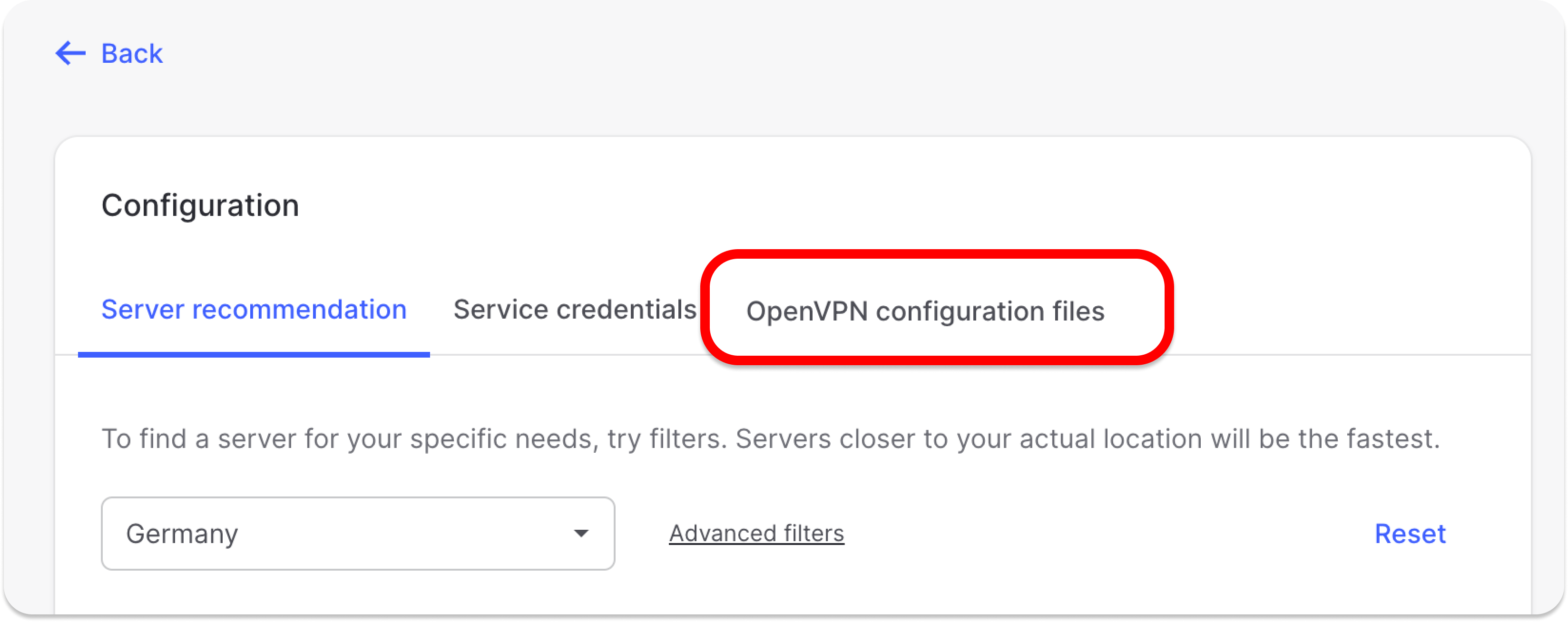 1. Under Set up NordVPN manually, select OpenVPN configuration files.
