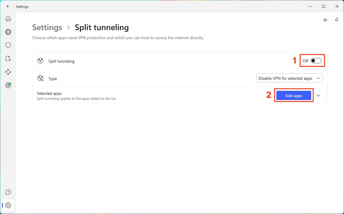 If NordVPN’s split tunneling is blocking the internet access on an allowlisted application, follow these steps: