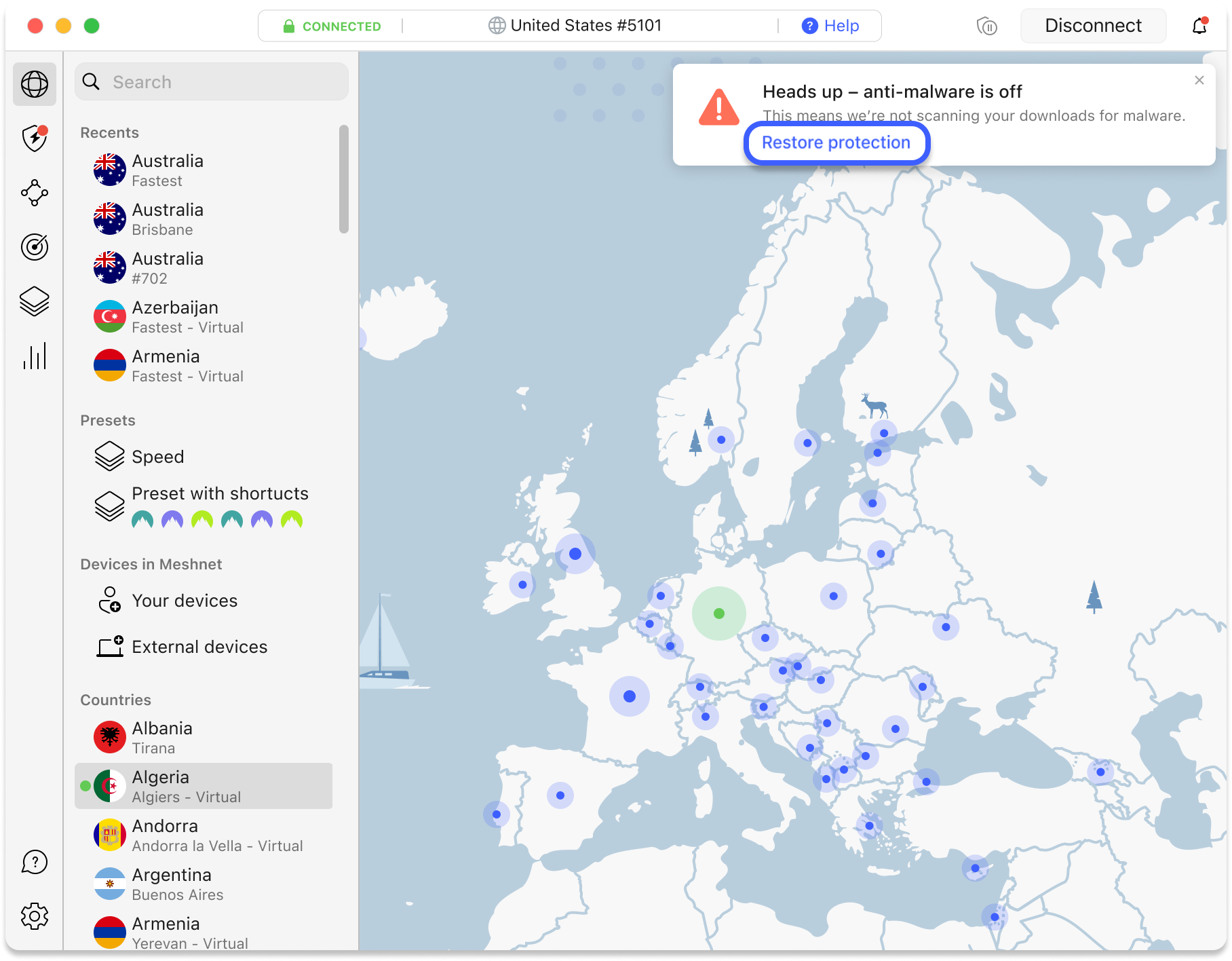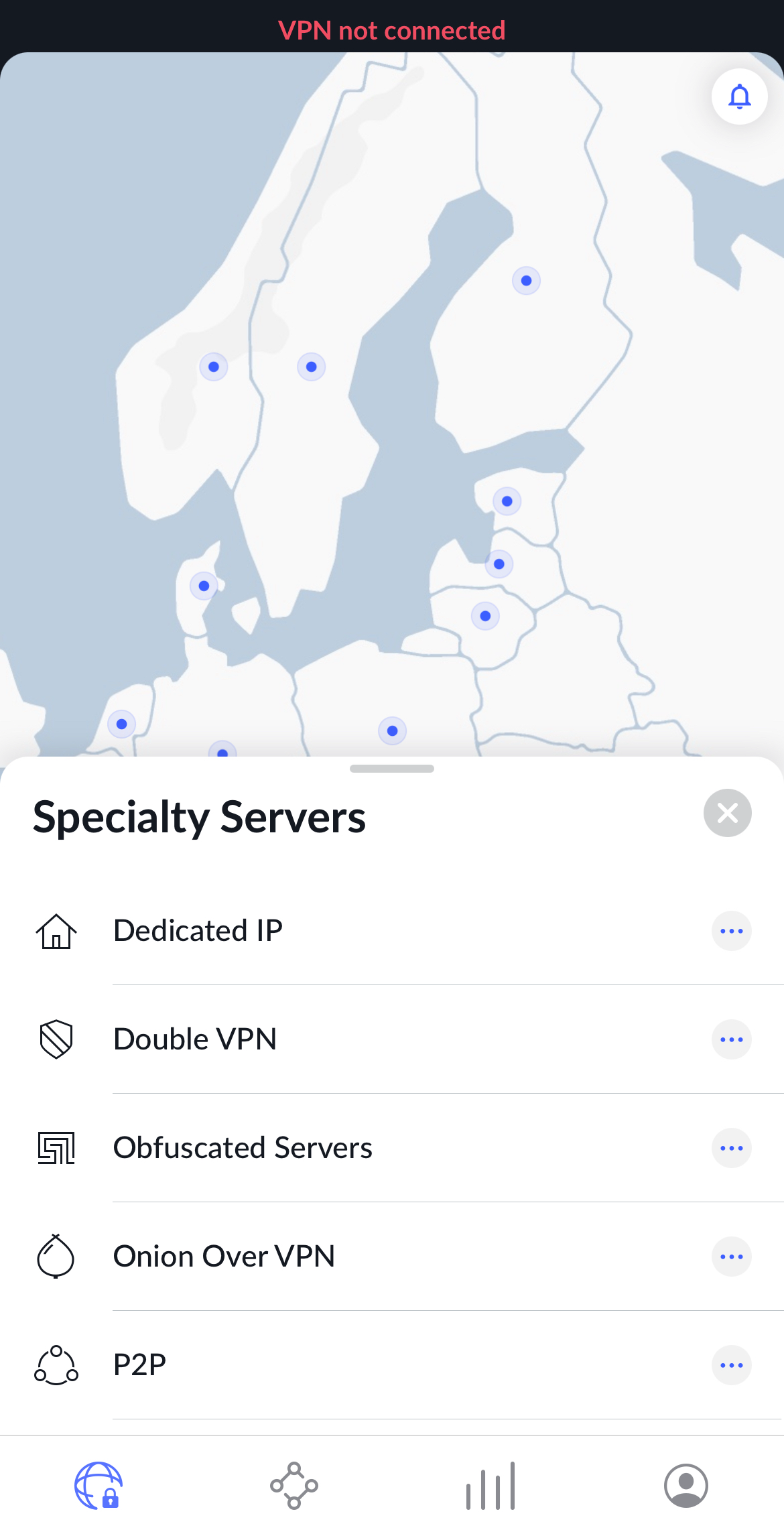 NordVPN has specialty servers that serve different purposes.