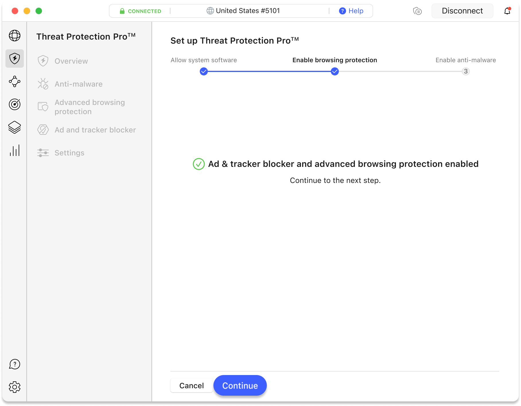 * Threat Protection Pro™Anti-malware protectionAdvanced browsing protectionAd and tracker blocker