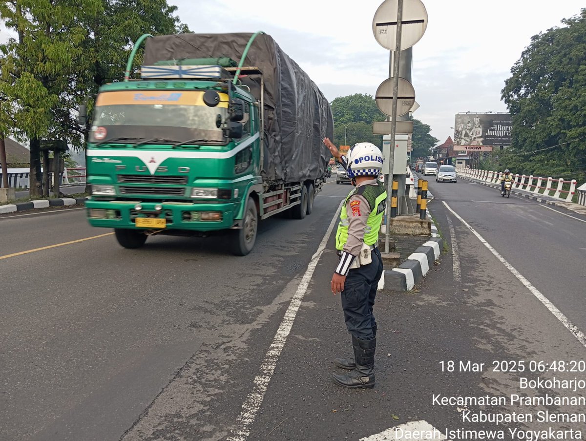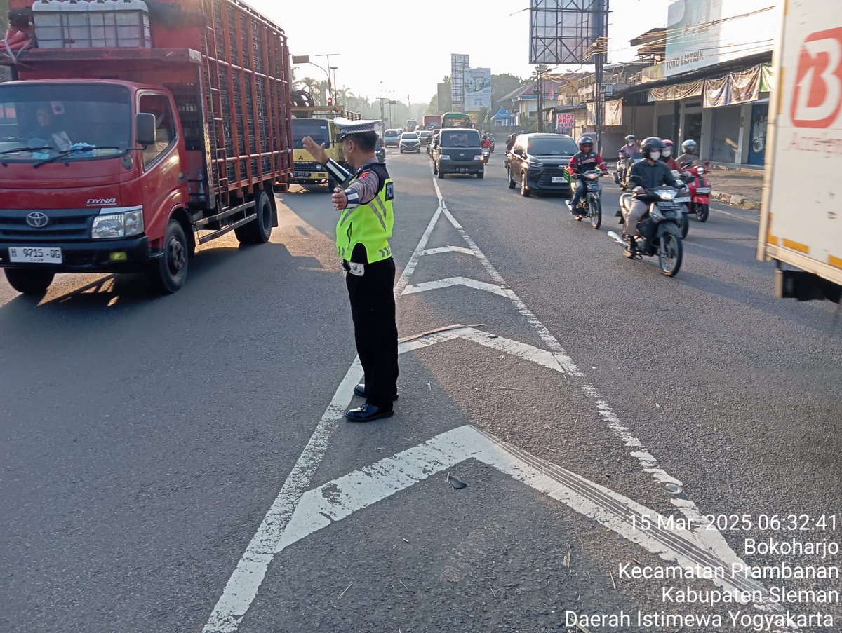 Anggota unit lantas Polsek Prambanan Sleman laksanakan giat pantau dan pengaturan arus lalin pagi hari di simp.3 TWC Jl. Jogja - Solo Bokoharjo Prambanan guna mencegah terjadinya kemacetan serta mengurangi angka kecelakaan lalulintas. Sabtu 15/03/2025. POLRI UNTUK MASYARAKAT https://t.co/CzyxLow6FX