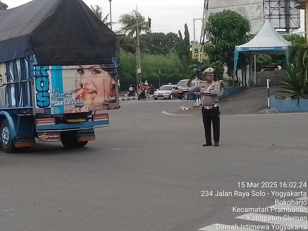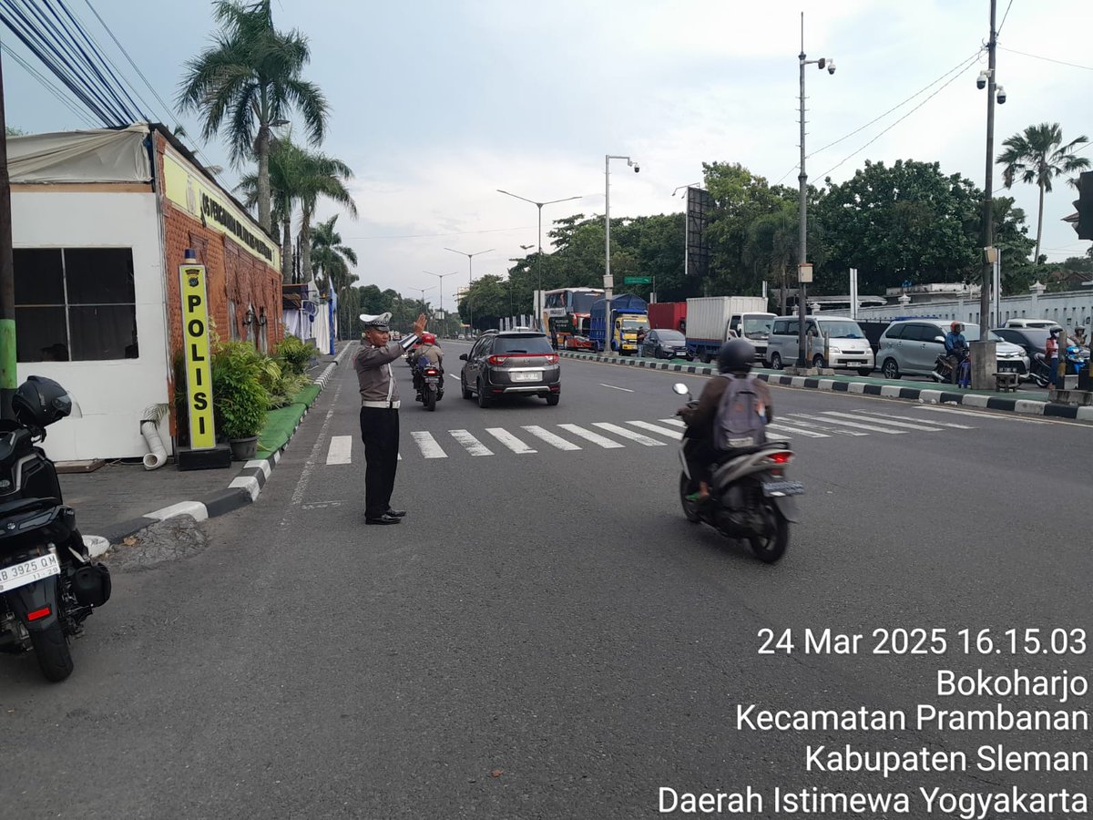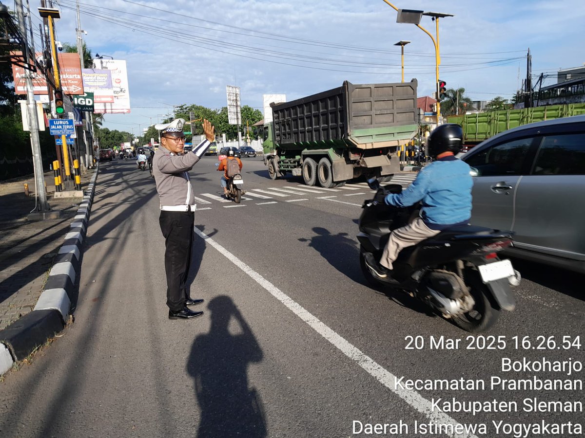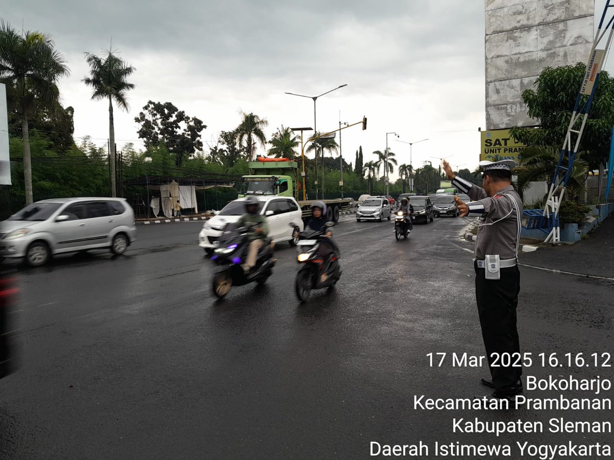 Anggota unit lantas Polsek Prambanan Sleman laksanakan giat pantau dan pengaturan arus lalin sore hari di simp.3 TWC Jl. Jogja - Solo Bokoharjo Prambanan guna mencegah terjadinya kemacetan serta mengurangi angka kecelakaan lalulintas. Rabu 12/03/2025. POLRI UNTUK MASYARAKAT https://t.co/GrdQ1RlF5W