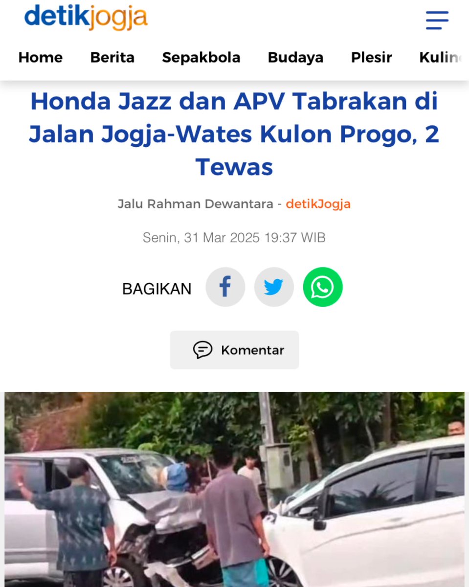 ● Kecelakaan lalu lintas melibatkan Honda Jazz vs Suzuki APV terjadi di Jalan Jogja-Wates Sentolo Kulon Progo pada sore tadi. Untuk selengkapnya bisa dibaca di https://t.co/NgfqIHcOw3 ya lurr. ● Sumber : @detikjogja_ https://t.co/xyXXDcrNTS ● Lokasi : Sukoreno Sentolo https://t.co/0dUI3xaNUN