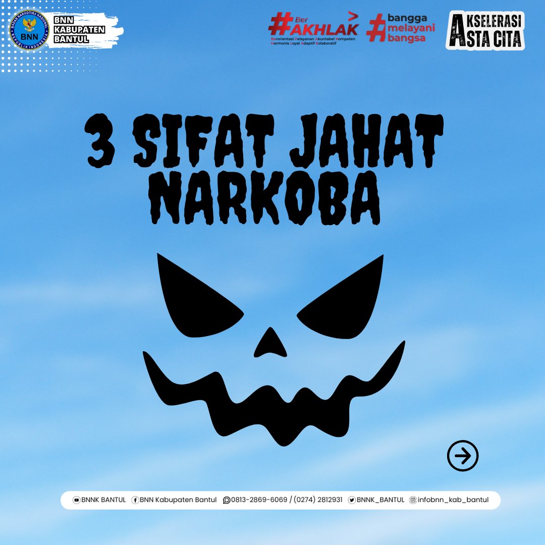 Kenali 3 Sifat Jahat Narkoba Narkoba memiliki cara kerja yang perlahan tapi pasti menghancurkan fisik mental dan masa depan penggunanya. Melalui slide ini mari kita pelajari tiga sifat berbahaya narkoba yang sering tidak disadari. https://t.co/JRdWSI7Q8v
