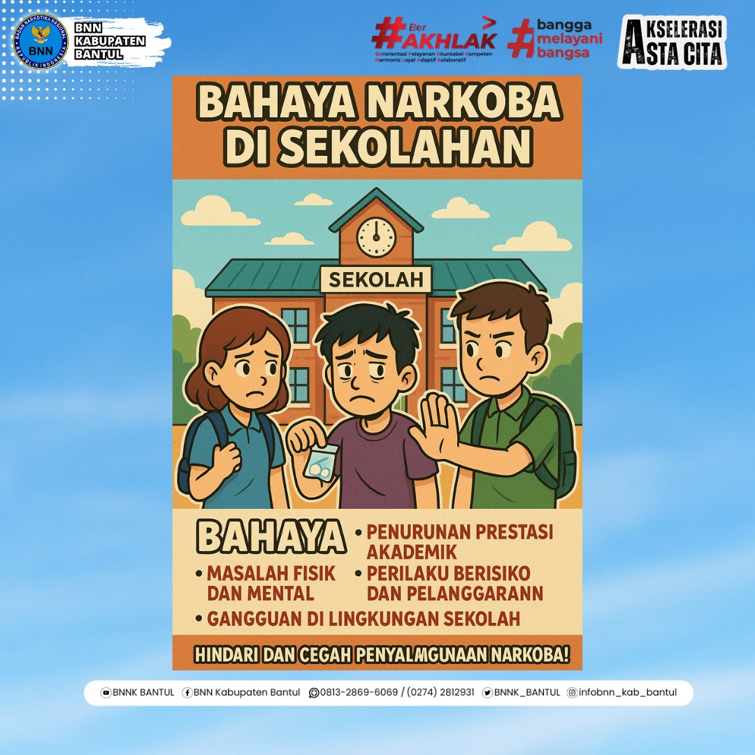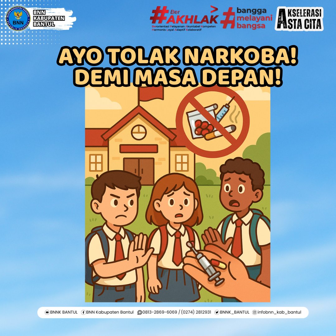 Halo Kawan Bawana! Narkoba merusak masa depan. Mulai dari sekolah kita bangun generasi yang berani menolak dan peduli terhadap sesama. https://t.co/IYH5Gc2QnL
