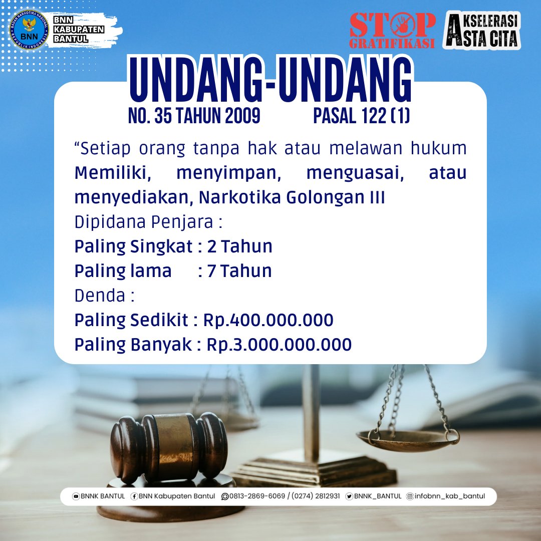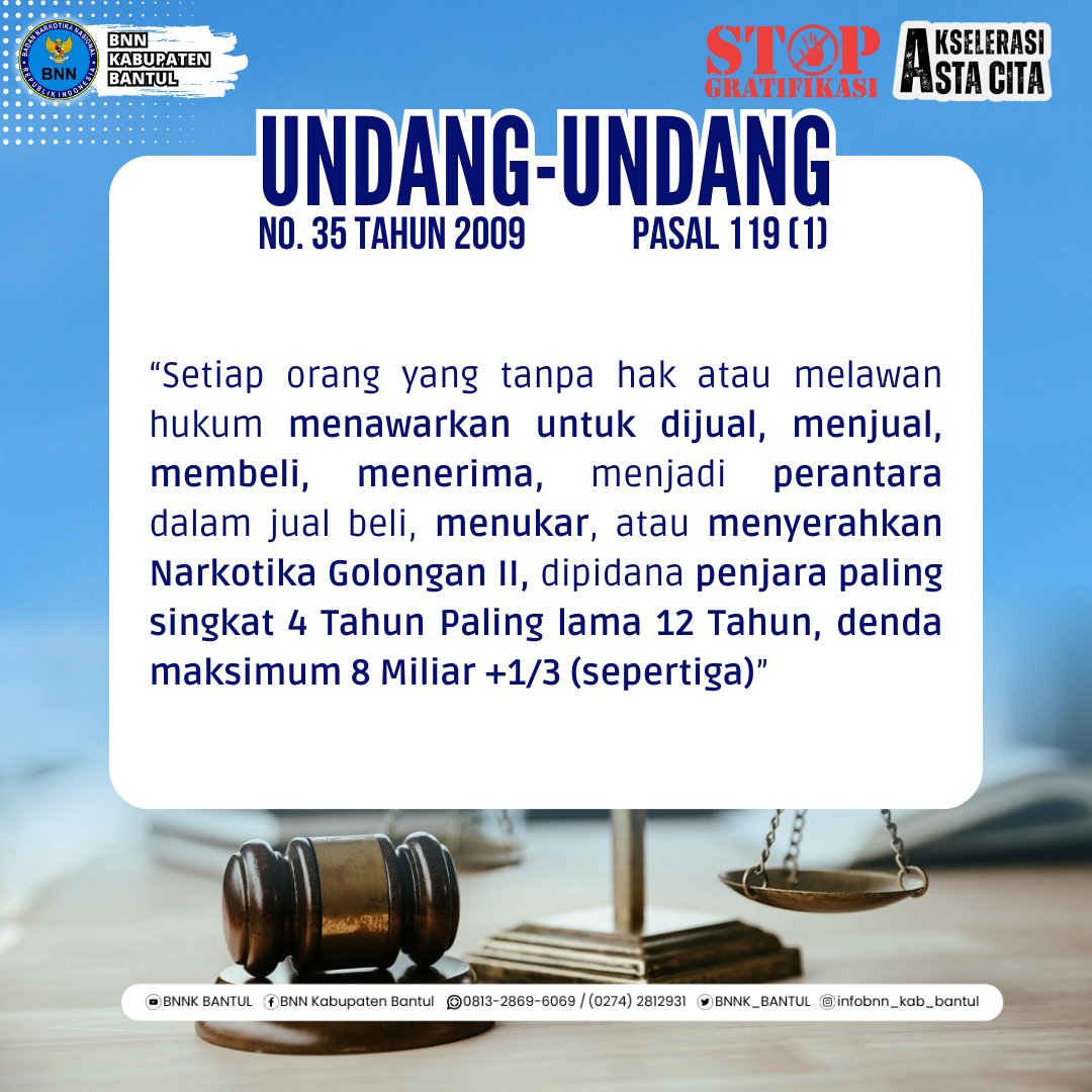 Halo Kawan Bawana! Tahu nggak sih? Di UU No. 35 Tahun 2009 tepatnya di Pasal 119 Ayat (1) diatur tentang hukuman tegas buat mereka yang terlibat dalam peredaran gelap narkoba. Ini jadi salah satu cara untuk melawan peredaran narkoba di Indonesia https://t.co/IGb4ELWMo4