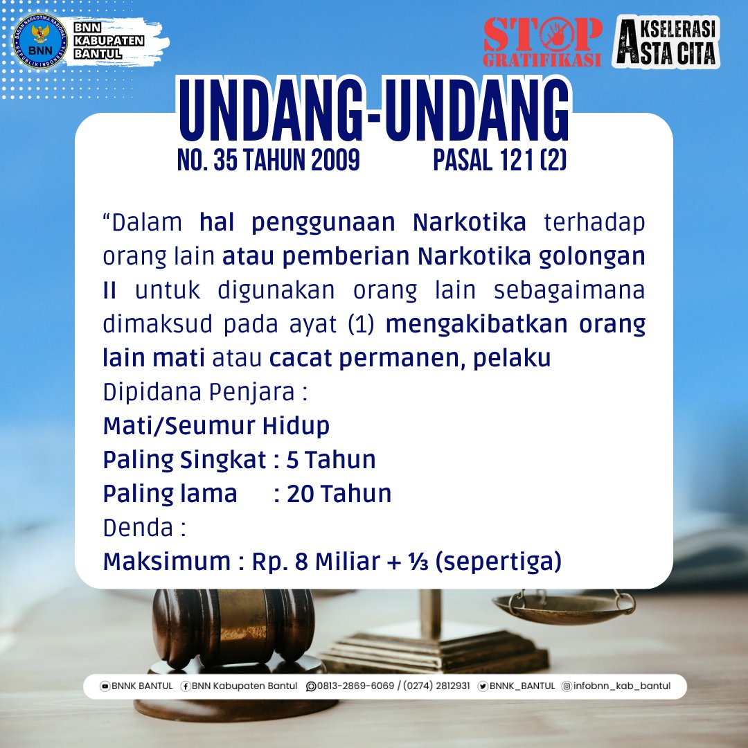 Halo Kawan Bawana! Ayo kita simak bersama-sama UU No. 35 Tahun 2009 Pasal 119 Ayat (2). Pasal ini memberikan hukuman yang tegas bagi mereka yang terlibat dalam peredaran narkoba. Langkah hukum yang serius ini bertujuan untuk melindungi masyarakat dari ancaman bahaya narkoba. https://t.co/OwPVc4ITnX