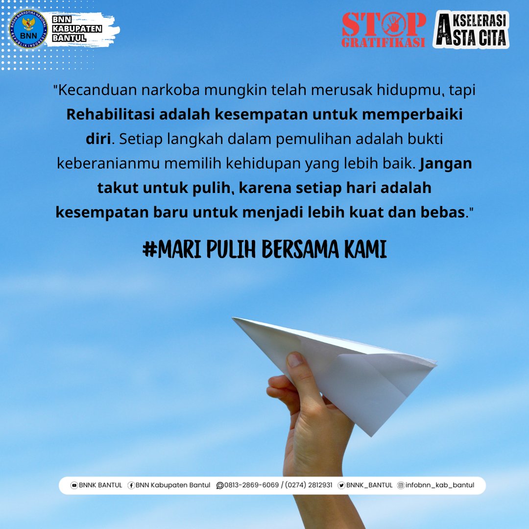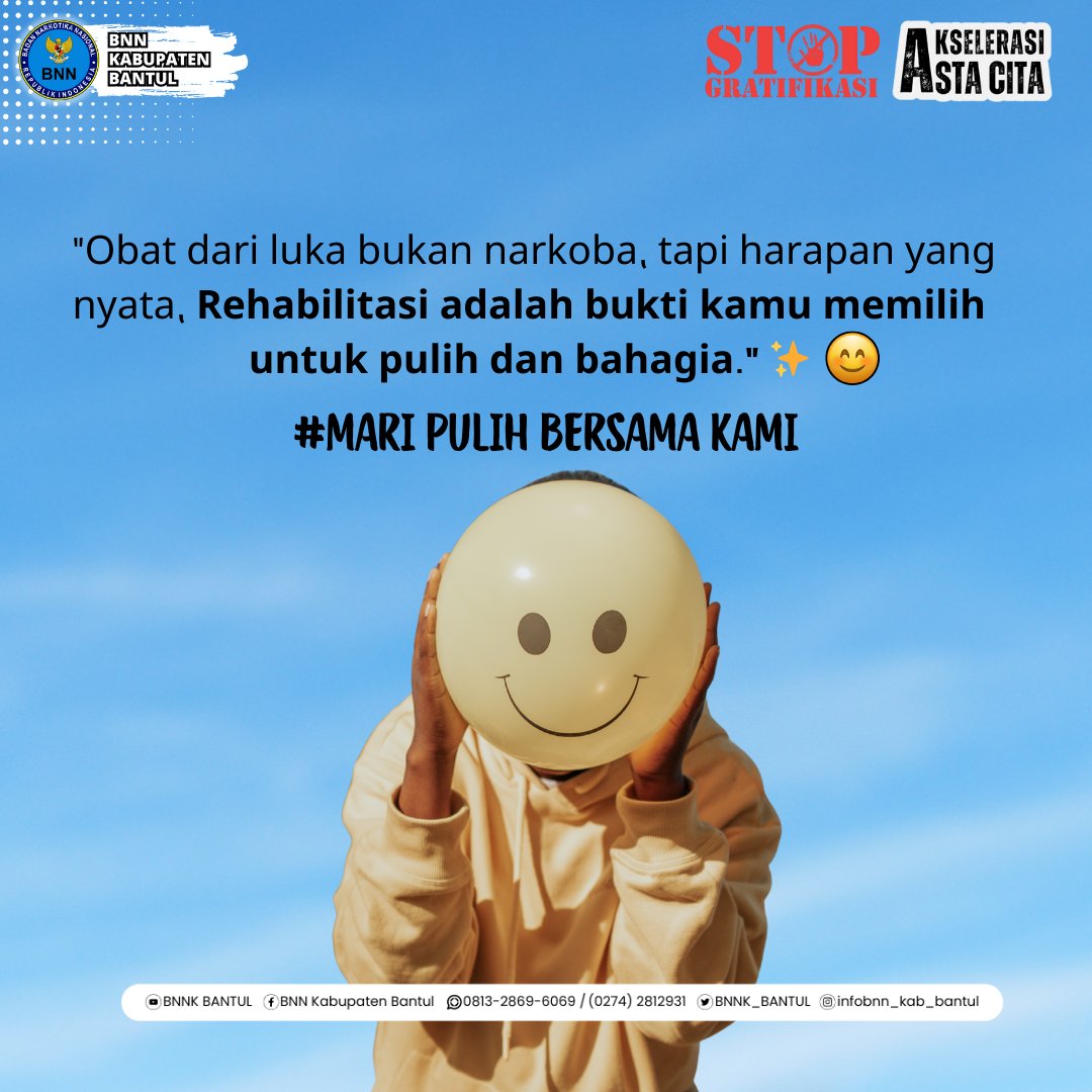 Bersama kita bisa mewujudkan masa depan yang lebih cerah dan bebas dari narkoba. Jangan ragu untuk meminta bantuan karena pemulihan dimulai dari keberanian untuk berubah. Kami hadir di sini untukmu mari pulih bersama kami :) https://t.co/nXBuPLTgcA