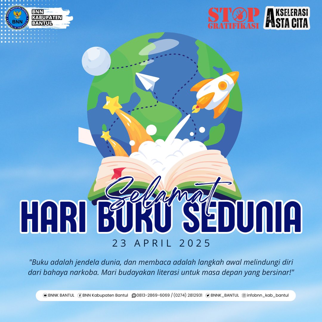 Halo Kawan Bawana! Selamat Hari Buku Sedunia! Buku adalah jendela dunia dan lewat membaca kita bisa memperluas wawasan termasuk tentang bahaya narkoba. Mari jadikan membaca sebagai gaya hidup karena generasi cerdas adalah generasi yang bebas narkoba! https://t.co/tJtMeSibqP