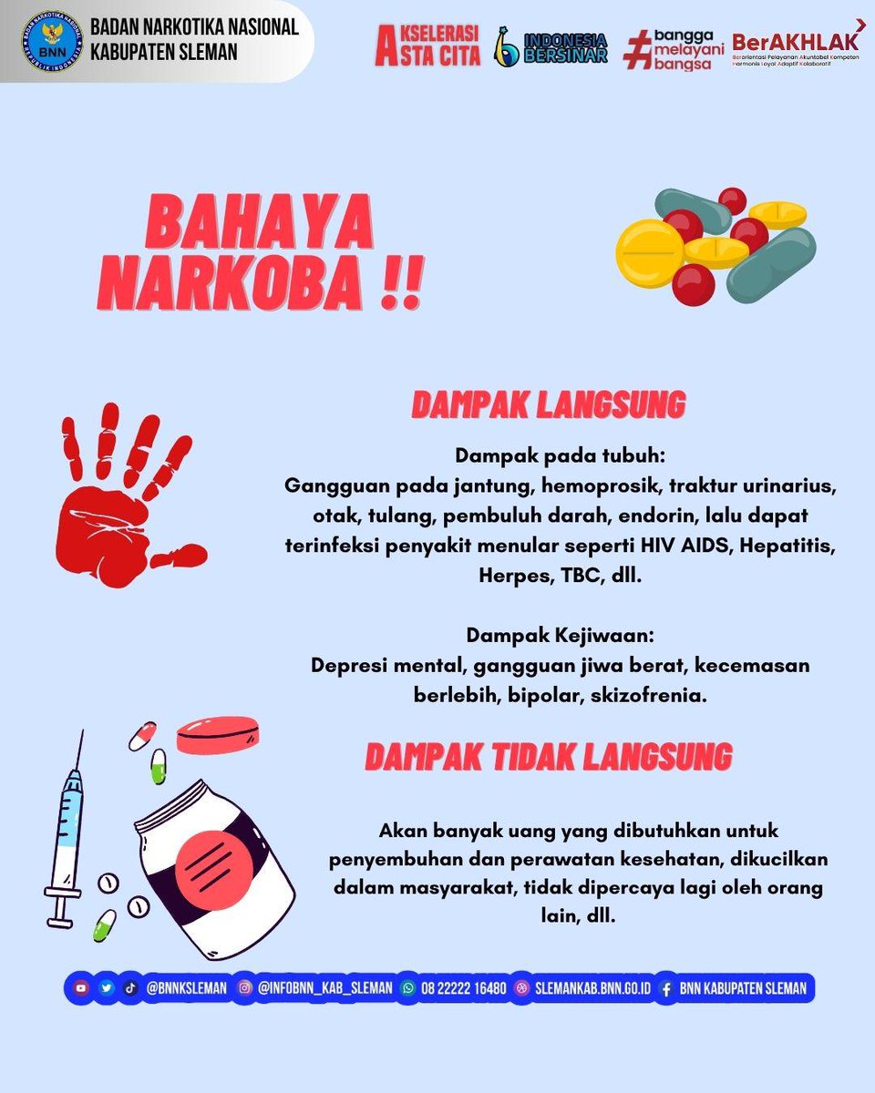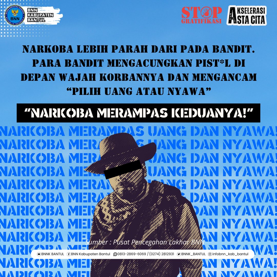 Halo Kawan Bawana! Narkoba itu bukan hanya merampas materi saja ya! Tetapi juga merapas nyawa! Mari hidup sehat tanpa narkoba jangan hamburkan harta demi hal yang dapat merusak tubuh hingga menghilangkan nyawa karena Narkoba! https://t.co/9H3aAm6bOW