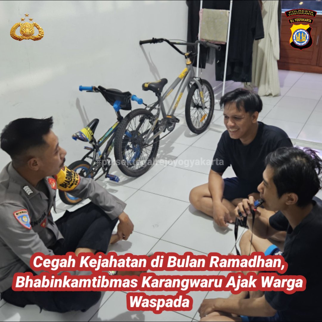 Bripka Rengga Endyka Bhabinkamtibmas Kelurahan Karangwaru #polsektegalrejo melaksanakan sambang dialogis dengan warga Kampung Bangirejo Rabu (12/3) malam. Ia mengingatkan warga untuk waspada terhadap pencurian dan penipuan selama bulan Ramadhan serta mengajak mereka https://t.co/r5KJ3aFXGn