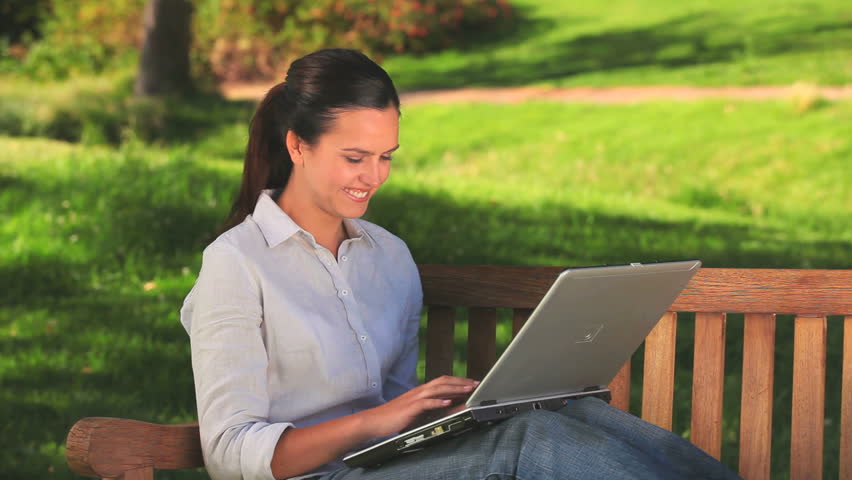 good looking woman with a laptop sitting on a bench | 25,577 | ./train/img_25577.jpeg | [