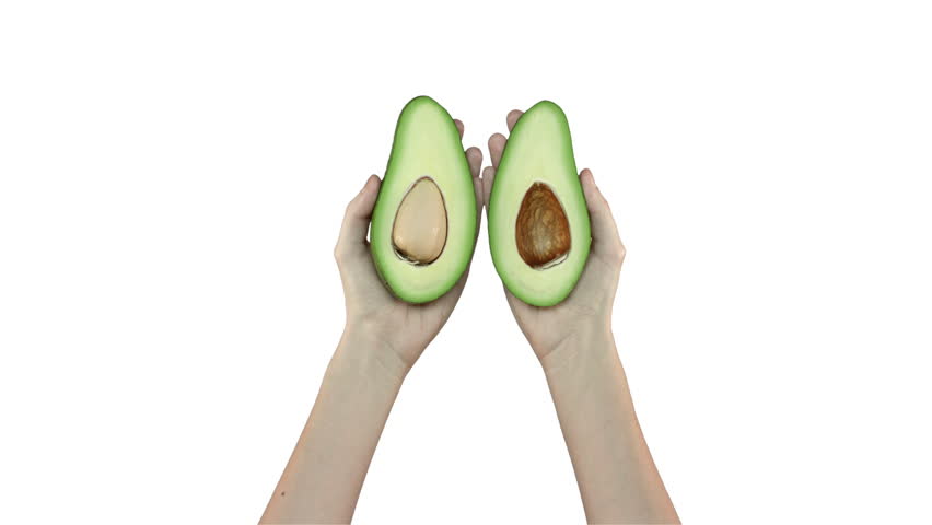 halves of avocado , held by female hands on white background , showing the core | 26,906 | ./train/img_26906.jpeg | [
