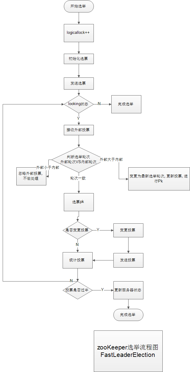 一旦Leader服务器出现崩溃,或者由于网络原因导致Leader服务器失去了过半Follower的联系,那么就会进入崩溃恢复模式,并且恢复后需要一个新的leader,因此zab协议需要一个高效的选举方案
