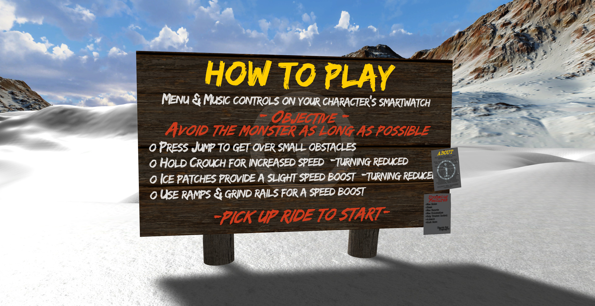 1,358,630 | 1,358,630 | Ski Doom VR | Aug 13, 2020 | 0 | 0 | 0 | The classic ski survival game is back - and this time, in virtual reality Select from a variety of unlockable skis, snowboards, or sleds, and hit the slopes to outrun the mountain monster as long as possible. Featuring an infinite trail of procedurally generated hazards, including ramps, trees, rocks, ice patches, grinding rails, and many more. Your best run is automatically added to our global leaderboards. Can you survive long enough to be #1? Features: -Procedurally generated hazards, including ramps, trees, rocks, ice patches, grinding rails and many more. No two runs are ever the same -Multiple rides and designs to unlock and choose from, including skis, snowboards, sleds and tubes. All unlocks are cosmetic and do not alter handling -Steam Leaderboards: Survive long enough to become the #1 rider worldwide -Both controller button and motion tracking based controls -Weather Effects -12 song soundtrack, with music controls accessible from the in-game smartwatch -No UI: All menus and displays are real world items, such as your in-game smartwatch or the score balloon that follows you on your run NOTE: Windows Mixed Reality headsets may require some controller bindings to be set manually | The classic ski survival game is back - and this time, in virtual reality Select from a variety of unlockable skis, snowboards, or sleds, and hit the slopes to outrun the mountain monster as long as possible. Featuring an infinite trail of procedurally generated hazards, including ramps, trees, rocks, ice patches, grinding rails, and many more. Your best run is automatically added to our global leaderboards. Can you survive long enough to be #1? Features: -Procedurally generated hazards, including ramps, trees, rocks, ice patches, grinding rails and many more. No two runs are ever the same -Multiple rides and designs to unlock and choose from, including skis, snowboards, sleds and tubes. All unlocks are cosmetic and do not alter handling -Steam Leaderboards: Survive long enough to become the #1 rider worldwide -Both controller button and motion tracking based controls -Weather Effects -12 song soundtrack, with music controls accessible from the in-game smartwatch -No UI: All menus and displays are real world items, such as your in-game smartwatch or the score balloon that follows you on your run NOTE: Windows Mixed Reality headsets may require some controller bindings to be set manually | The classic ski survival game is back - and this time, in virtual reality. Pick your ride, hit the slopes, and outrun the mountain monster as long as possible. Compete for the #1 spot on the global leaderboards | null | null | null | SkiDoomVR@gmail.com | true | false | false | 0 | null | 0 | 0 | null | English | null | [] | sandman | sandman | Single-player,Steam Leaderboards | Free to Play,Indie,Sports | http://cdn.akamai.steamstatic.com/steam/apps/256794207/movie_max.mp4?t=1596168264 | 0 | null | 12 | 5 | 0 - 20000 | 0 | 0 | 0 | 0 | 0 | Sports,Indie,Arcade,Procedural Generation,Survival,3D Platformer,Physics,Survival Horror,Psychological Horror,Free to Play,Colorful,First-Person,6DOF,Singleplayer,VR | ||