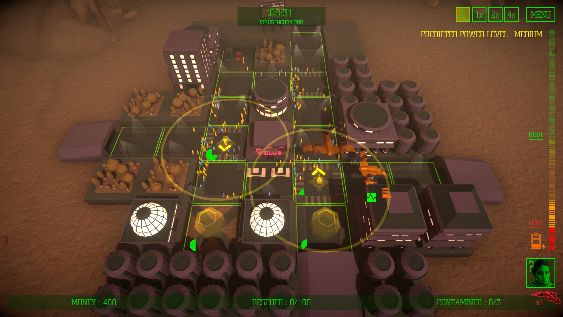 Ifectra is a strategy game set in 2124 on the distant planet Emevera III, ruled by the Maxploit Corporation, where an epidemic of a yet unknown virus broke out. Your goal as the corporation security commander is to evacuate as many healthy people as possible and to eliminate infected individuals.