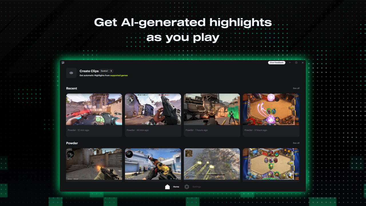 1,794,970 | 1,794,970 | Powder | Apr 14, 2022 | 0 | 0 | 0 | Just play. It’s automatic. Press play on your favorite game and let the AI do the rest - your best highlights will be detected automatically, ready for download at the end of each gaming session. Keep full control of your highlights. Powder PC also allows manual clipping and full session recording for gamers who want full control over their game clips. Use a hotkey to clip the last 30 seconds of your gameplay and save it directly to your Powder library. Record your entire gaming session if you want to include everything in your video. Get clips instantly on mobile. Create an account on the Powder mobile app and connect it to Powder PC to get all your clips sent directly to mobile. You can edit your PC clips instantly on Powder’s brand new mobile editor. Share everywhere. On Powder PC you’re one click away from showing off your best game clips to the rest of the world. Share to Youtube, Discord and more. Your favorite games are on Powder. Warzone, Minecraft, Valorant, Overwatch & many more! Powder’s AI detection tech is compatible with the hottest games. Don’t see your most played game? Don’t worry, more games are constantly being added to Powder’s AI. | Just play. It’s automatic. Press play on your favorite game and let the AI do the rest - your best highlights will be detected automatically, ready for download at the end of each gaming session. Keep full control of your highlights. Powder PC also allows manual clipping and full session recording for gamers who want full control over their game clips. Use a hotkey to clip the last 30 seconds of your gameplay and save it directly to your Powder library. Record your entire gaming session if you want to include everything in your video. Get clips instantly on mobile. Create an account on the Powder mobile app and connect it to Powder PC to get all your clips sent directly to mobile. You can edit your PC clips instantly on Powder’s brand new mobile editor. Share everywhere. On Powder PC you’re one click away from showing off your best game clips to the rest of the world. Share to Youtube, Discord and more. Your favorite games are on Powder. Warzone, Minecraft, Valorant, Overwatch & many more! Powder’s AI detection tech is compatible with the hottest games. Don’t see your most played game? Don’t worry, more games are constantly being added to Powder’s AI. | Powder PC is an AI gaming recorder that automatically detects and saves the best moments from your gameplay. Just leave Powder running in the background while you play, and your best highlights will be clipped and saved to the Powder library. Pair with Powder mobile to get highlights on your phone. | null | https://powder.gg/pc | https://www.notion.so/powderapp/Powder-Support-830a7735027c4839a415aad45fee986d | contact@powder.gg | true | false | false | 0 | null | 0 | 0 | null | English | null | [] | Powder Team | Powder Team | null | Video Production | http://cdn.akamai.steamstatic.com/steam/apps/256878344/movie_max.mp4?t=1648738329 | 0 | null | 0 | 0 | 0 - 0 | 0 | 0 | 0 | 0 | 0 | null | ||