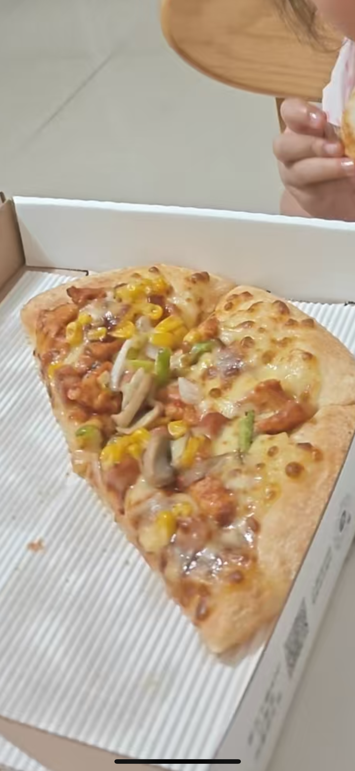 Pizza | ["cheese","chicken","corn","bell peppers","onions","mushrooms"] | ["pizza_slice:150g"] | |