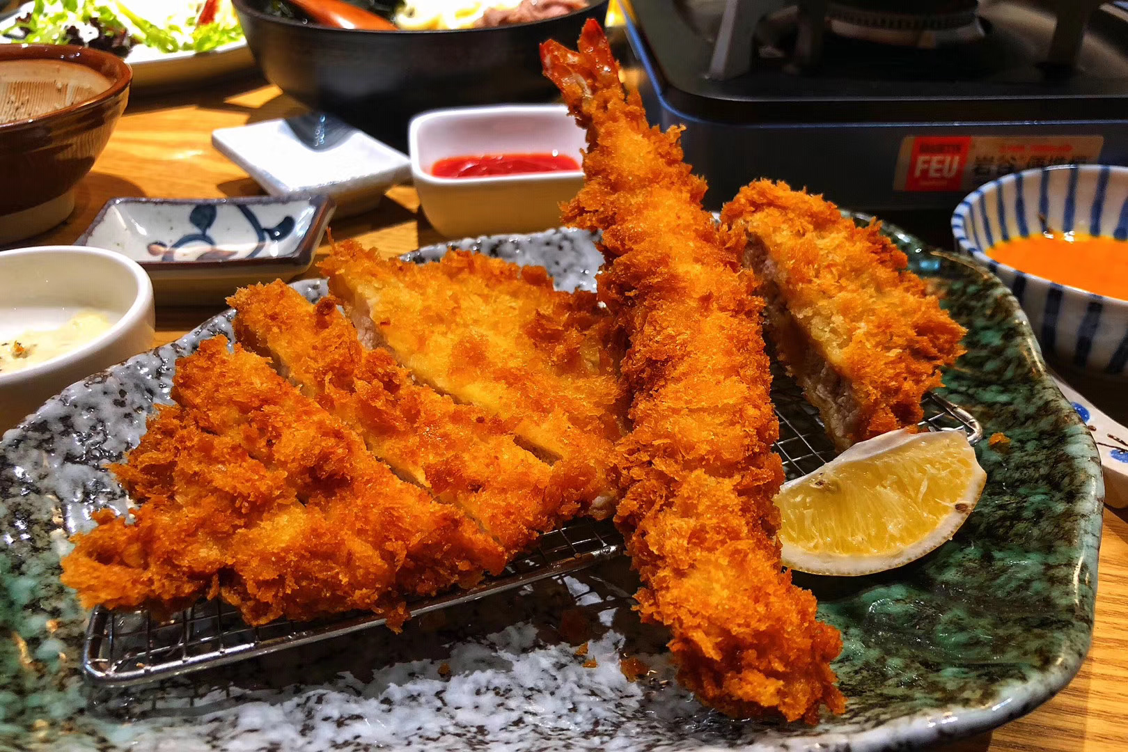 Fried Seafood Platter | ["shrimp","fish","breading","lemon"] | ["shrimp:200g","fish:150g","breading:100g"] | |