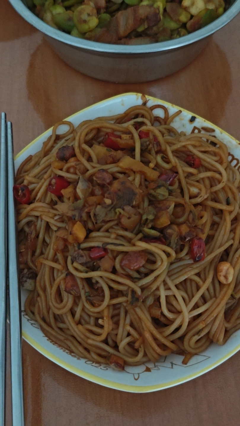 Stir-fried vegetables with ground meat | ["green beans","ground meat","tomato","spices"] | ["vegetables:200g","ground meat:150g"] | |