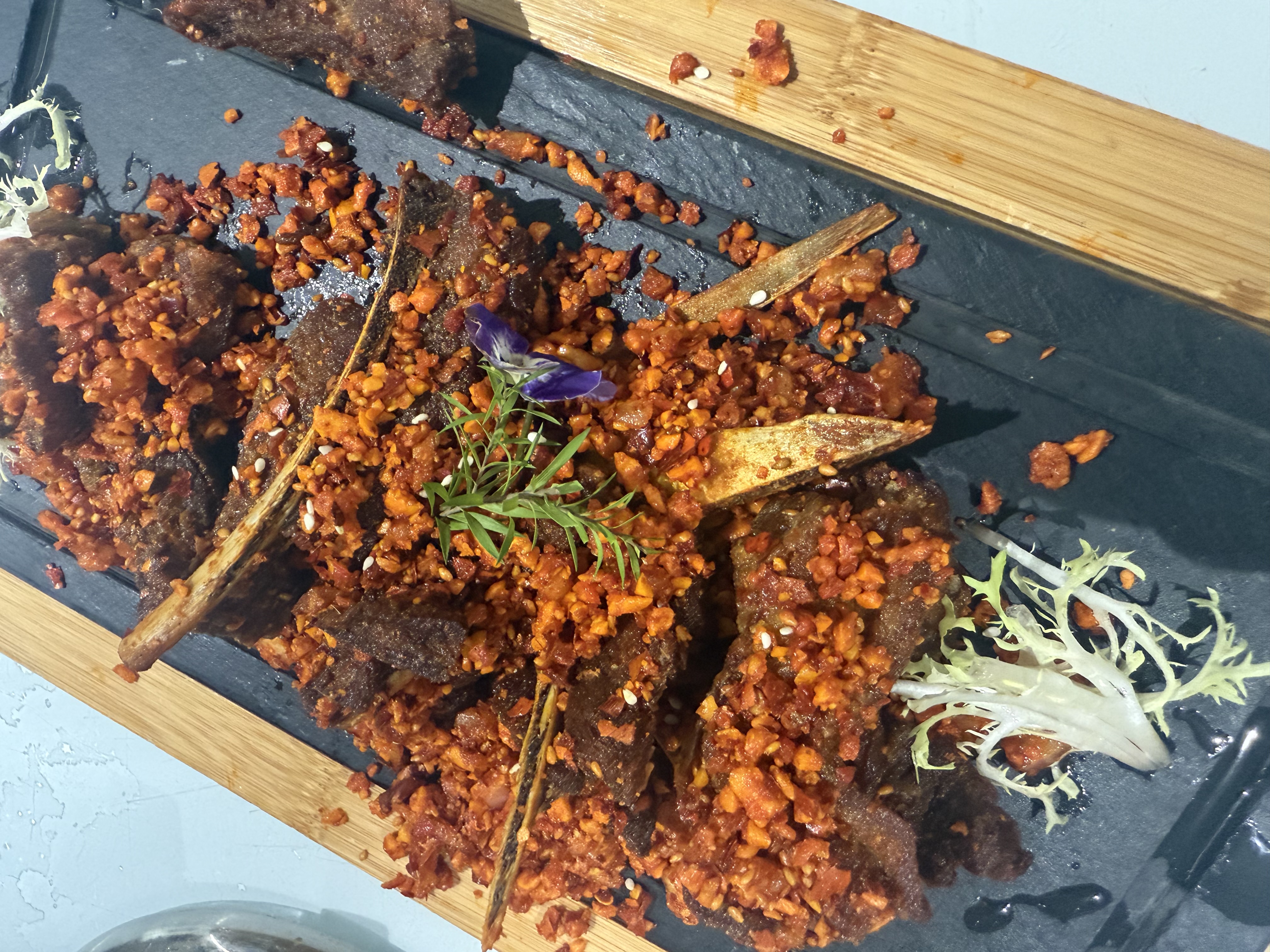 Spicy Skewers | ["meat","spicy sauce","vegetables"] | ["meat:200g","sauce:50g","vegetables:100g"] | |