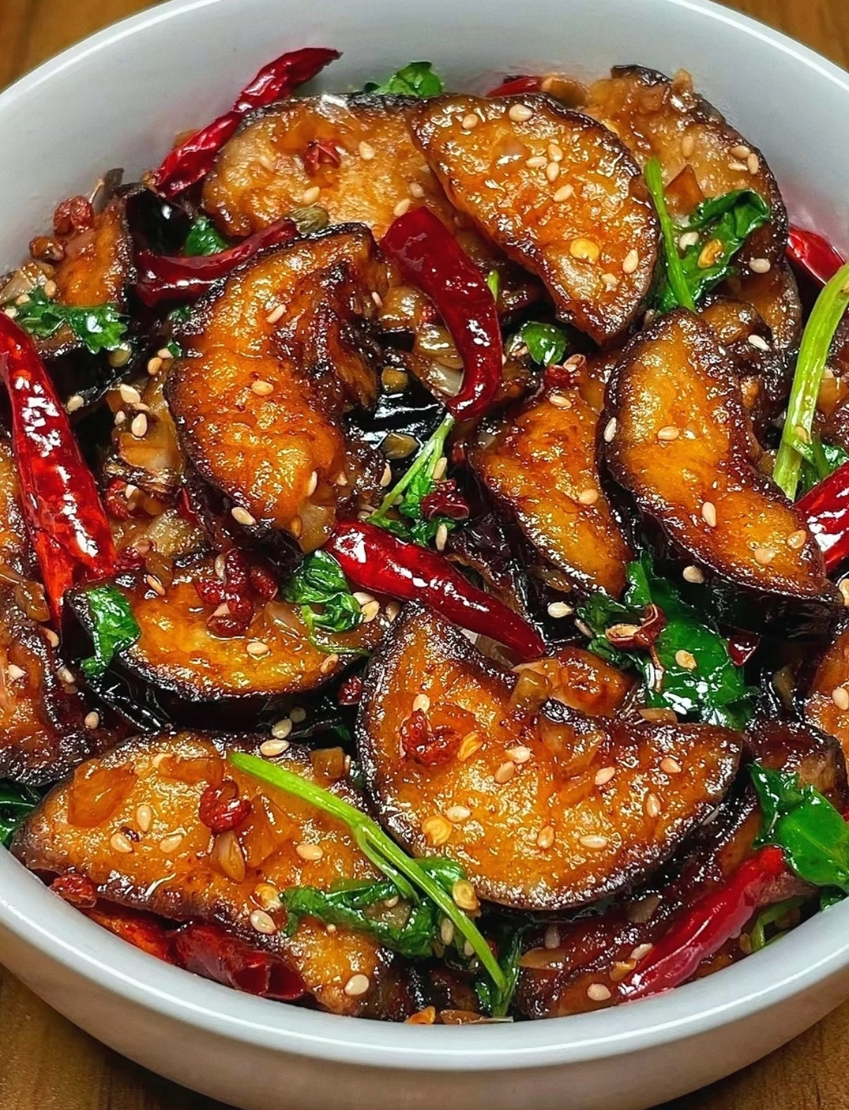 Stir-fried Eggplant | ["eggplant","oil","garlic","chili peppers","sesame seeds"] | ["eggplant:250g","oil:20g","spices:10g"] | |