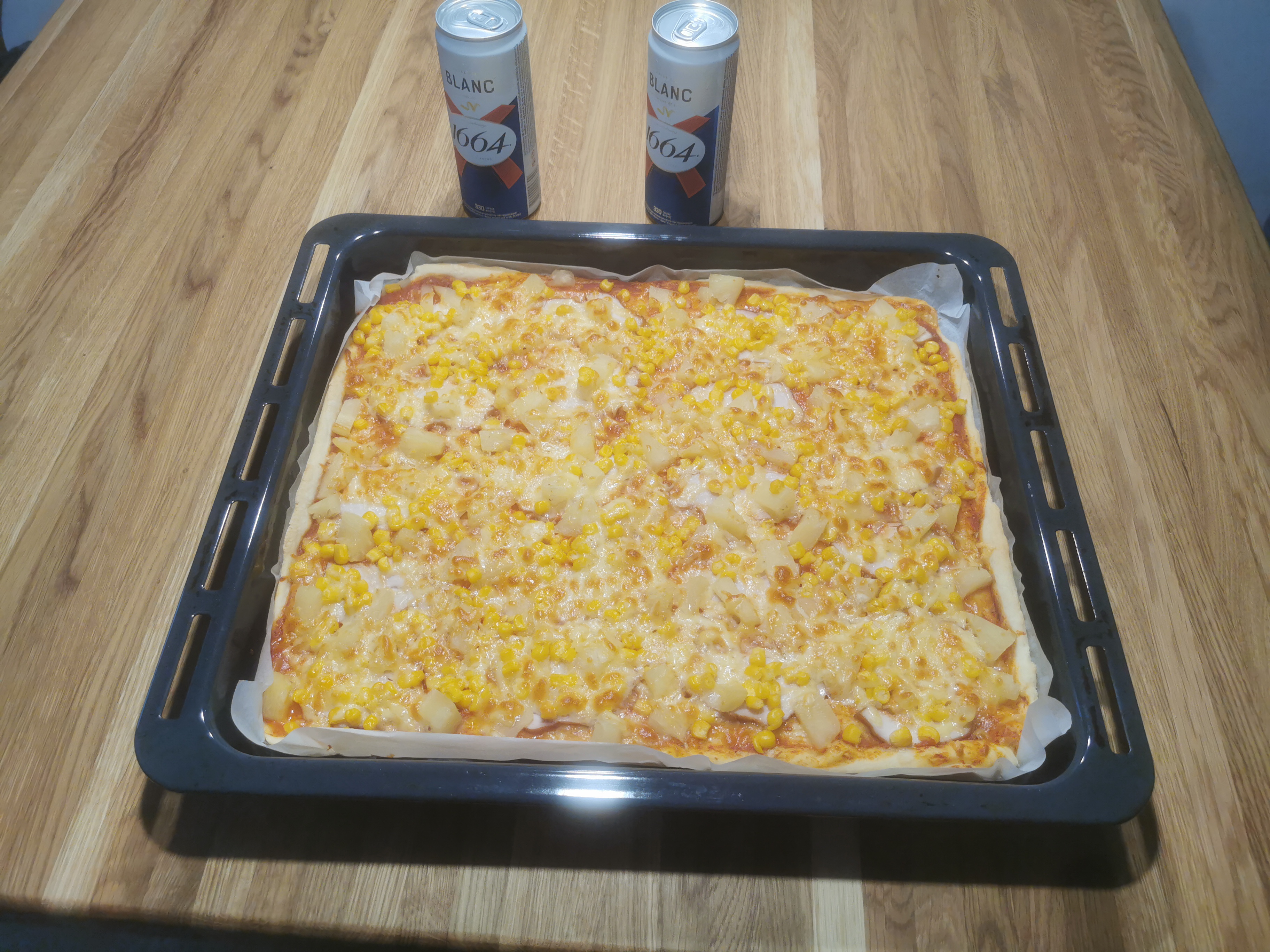Pizza | ["pizza dough","cheese","corn","pineapple","tomato sauce"] | ["pizza:400g"] | |