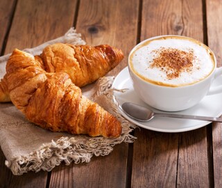 Croissants and Cappuccino | ["croissant","coffee","milk","sugar"] | ["croissant:150g","cappuccino:200g"] | |