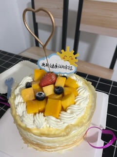 Fruit Cake | ["cake base","cream","mango","strawberry","blueberry"] | ["cake:200g","fruit:50g"] | |