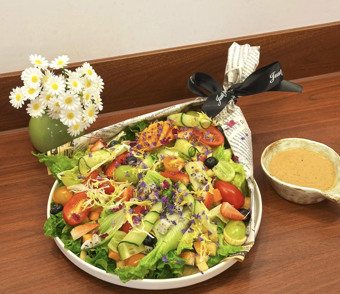 Mixed Salad | ["lettuce","tomatoes","cucumbers","bell peppers","dressing"] | ["lettuce:150g","tomatoes:50g","cucumbers:50g","dressing:30g"] | |