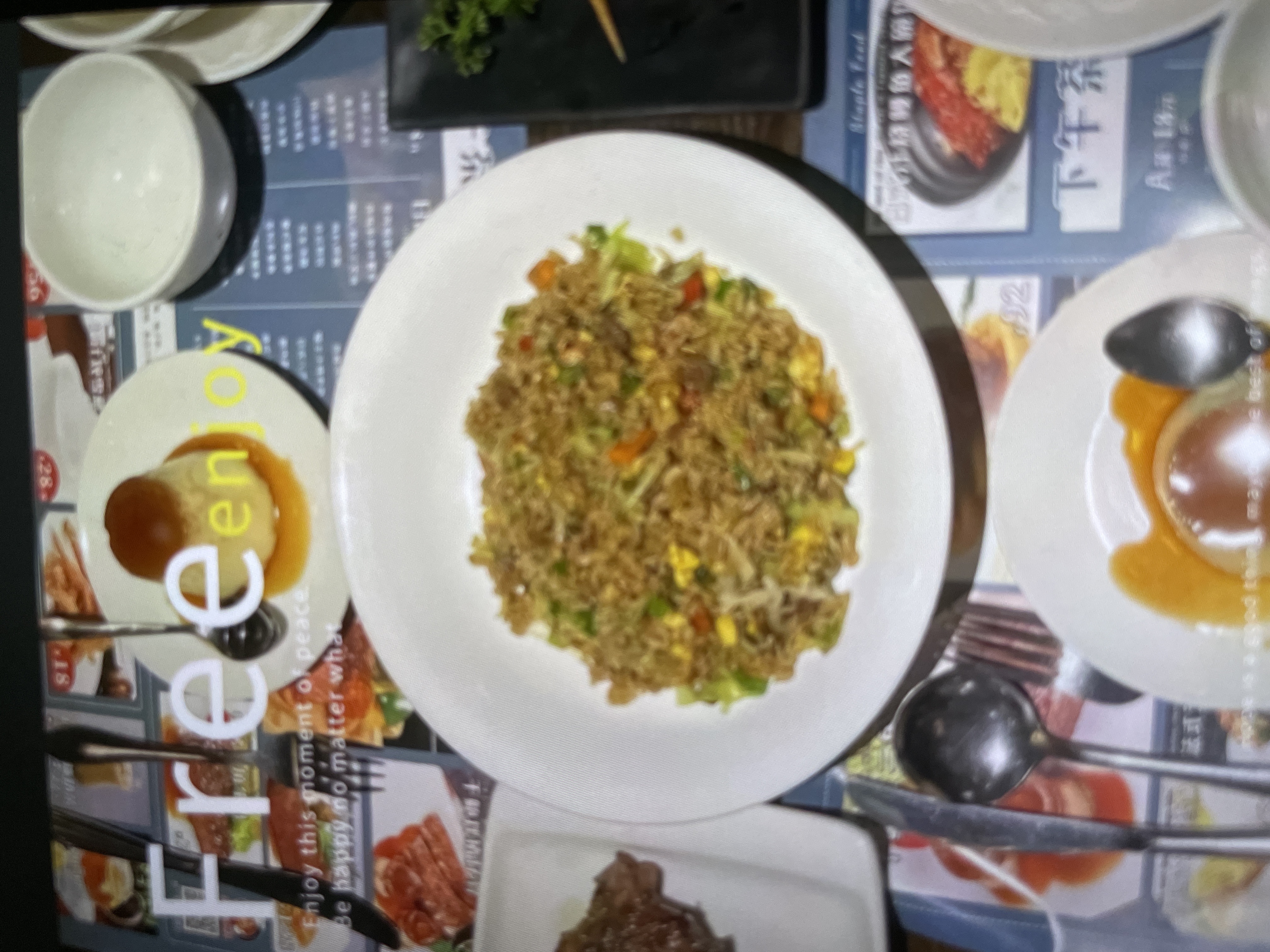 Mixed Asian Meal | ["fried item","eggs","rice","vegetables"] | ["fried_item:100g","omelet:150g","rice_soup:250g"] | |